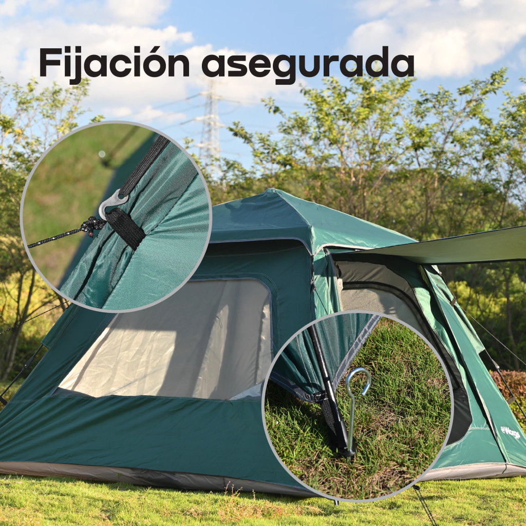 La WAGGS CARP07 está pensada para quienes buscan una carpa autoarmable amplia, práctica y resistente para disfrutar escapadas en familia o con amigos. Su sistema HUB permite un armado rápido y estable, mientras que el alero frontal integrado crea un espacio extra para cocinar, organizar equipos o simplemente relajarse a la sombra.